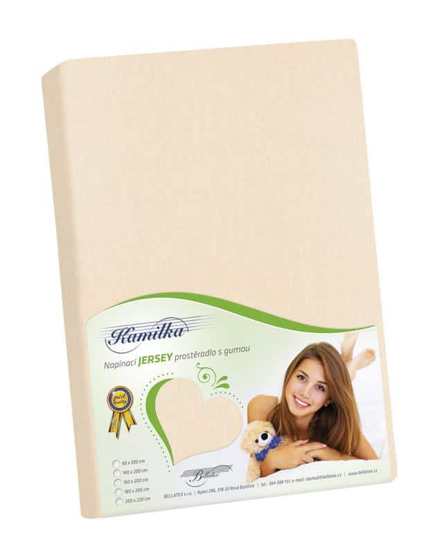 Prostěradlo jersey Kamilka v rozměru 90×200 cm nebo 180×200 cm s napínací gumou do tunýlku. Materiál: 100% bavlna. Gramáž 135 g/m2. Prát odděleně na 40°C.